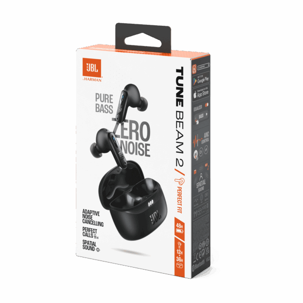 JBL Tune Beam 2 true wireless earbuds deliver up to 48 hours of exceptional JBL Pure Bass Sound and JBL Spatial Sound. Enjoy perfect-sounding calls with Adaptive Noise Cancelling and Smart Ambient technology.